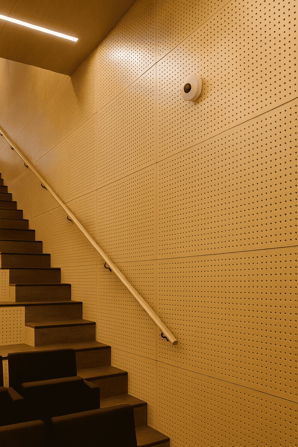Bu delikli akustik panel, özellikle konuşma netliğinin ve ses kalitesinin önemli olduğu alanlarda – tiyatro salonları, müzik odaları, eğitim alanları ve konferans salonlarında – ideal performans sunar. Panellerin iç kısmında kullanılan taş yünü veya cam yünü, yankıyı azaltarak mekânda konforlu bir akustik denge oluşturur.