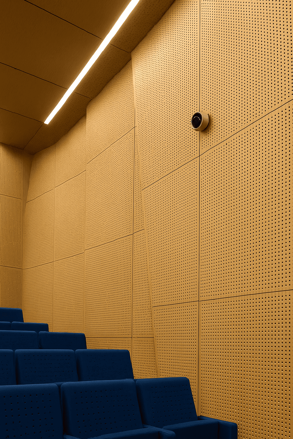 Aksa Akustik Panel teknolojisiyle üretilen bu paneller, tiyatro salonları, konferans odaları, stüdyolar ve müzik sınıfları gibi akustik hassasiyetin kritik olduğu ortamlarda en üst düzey performansı sunar. İç dolgusunda kullanılan taş yünü veya cam yünü ile ses emiciliği artırılırken, yangın dayanımı da sağlanır.